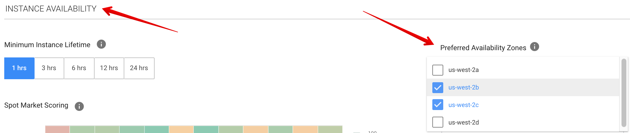 tipTo diversify the spot markets available for the Elastigroup, it is highly recommended to choose all the AZs listed for the region.